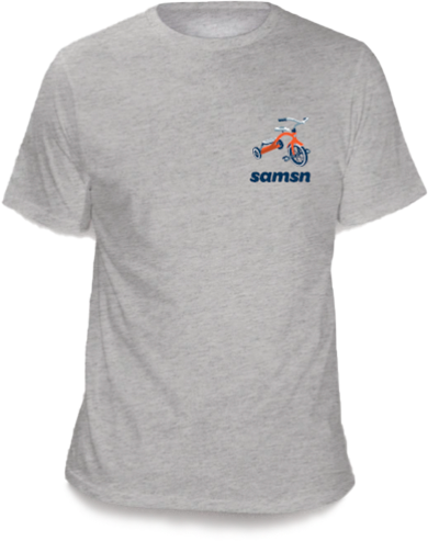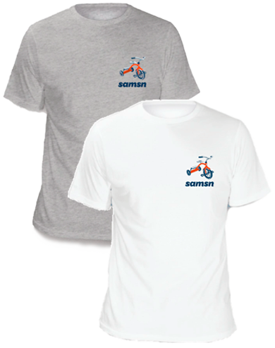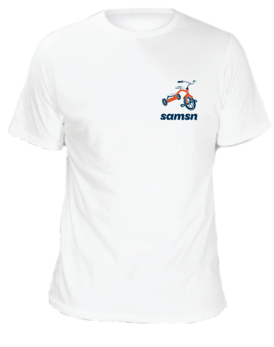 100% Cotton Trike & SAMSN Tee. Podium Cool, moisture fabric designed to help keep you cool and dry, Easy care fabric, quick drying. Colour is available in White and Grey.